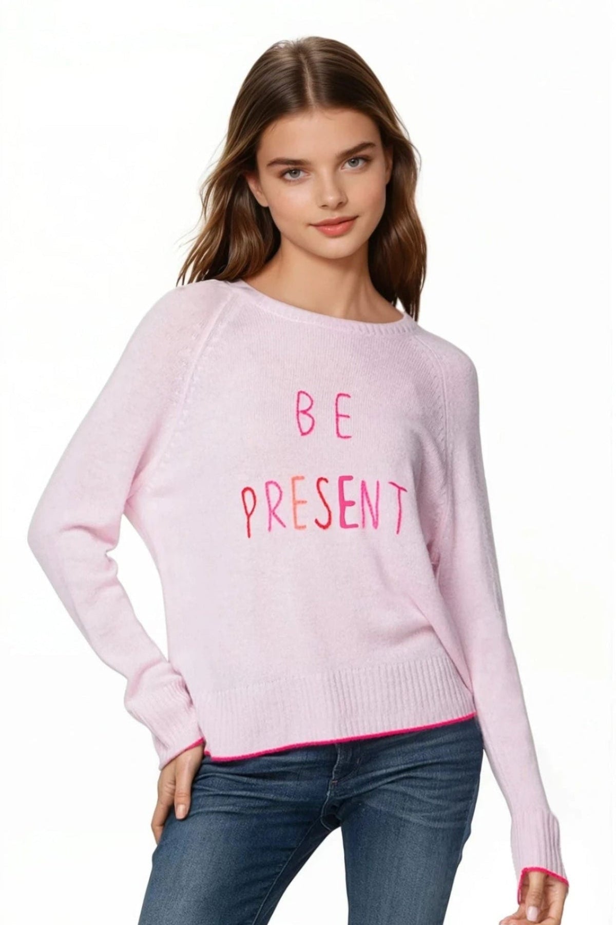 100% Cashmere Crewneck Sweater | Be Present Hand Stitch Embroidery